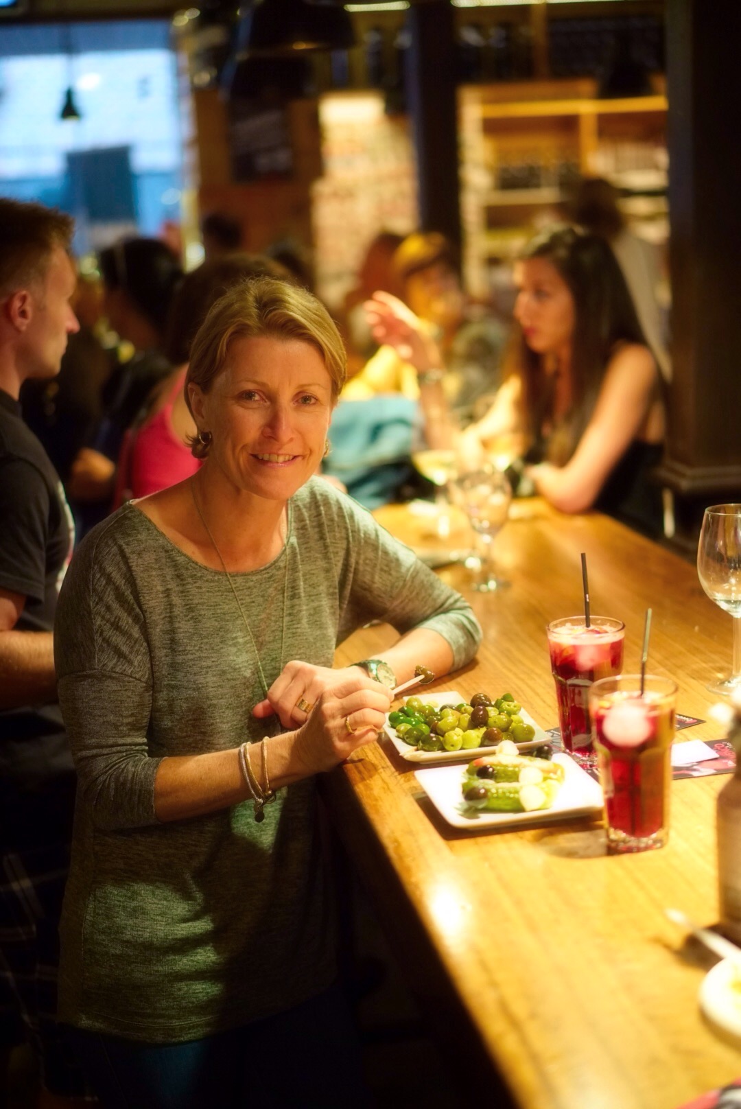 Sangria with olives and gherkins with tuna, pickled onions and olives for starters. Mojito or Rioja with empanadas for main, fresh air for desert!