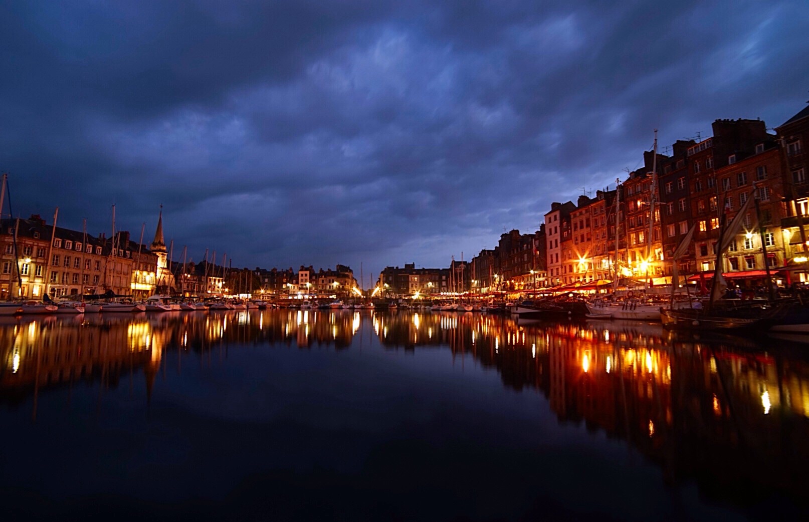 Honfleur is beautiful, the harbour is enclosed in four and five story wooden and brick buildings, most with restaurants on the ground floor all hovering over the water. Narrow laneways abut the harbour leading in all directions, filled with boutiques, art galleries and cider shops.