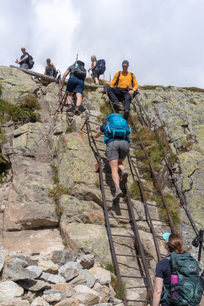 Then some iron ladders and wooden steps up to the refuge and Lac Blanc.